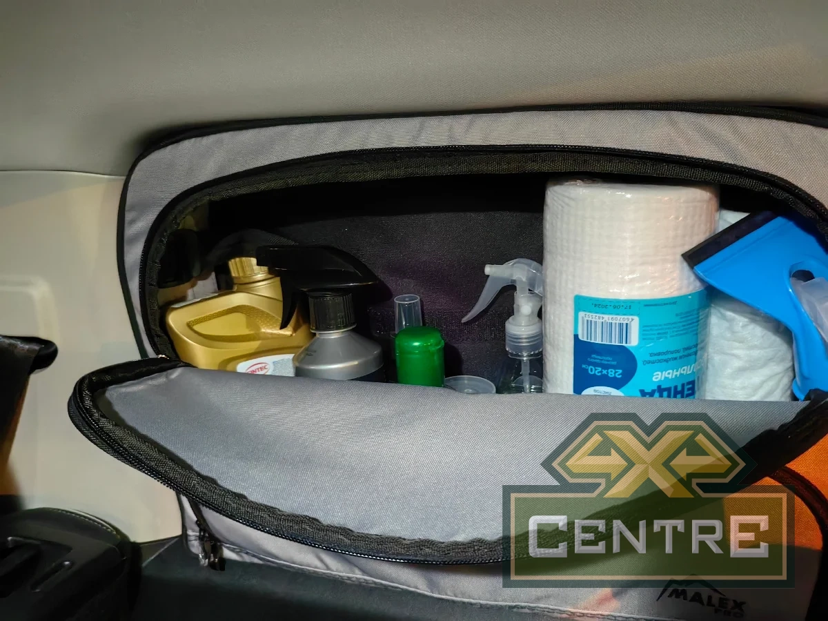- Сумка-органайзер устанавливается в проём бокового окна багажника;