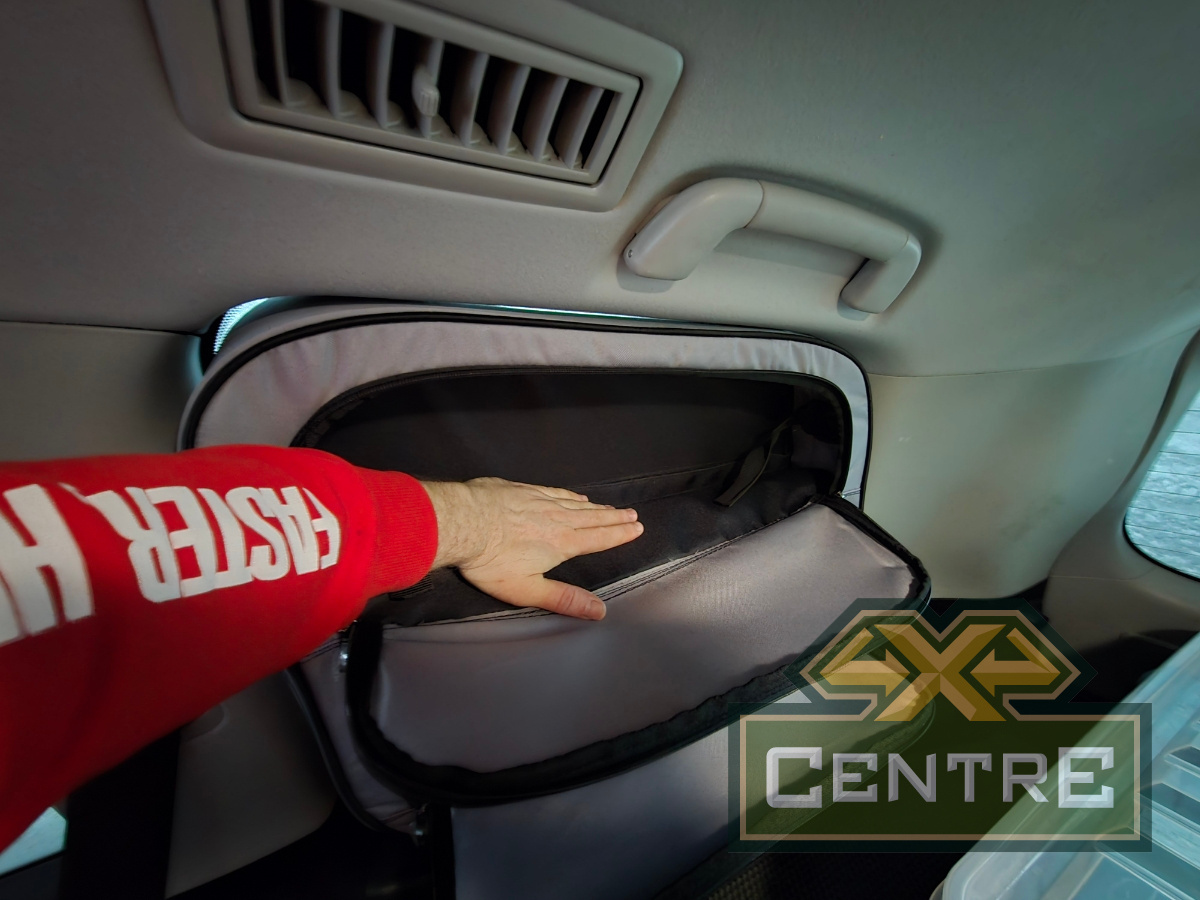 Сумка-органайзер устанавливается в проём бокового окна багажника. Заполняет весь проём бокового окна;