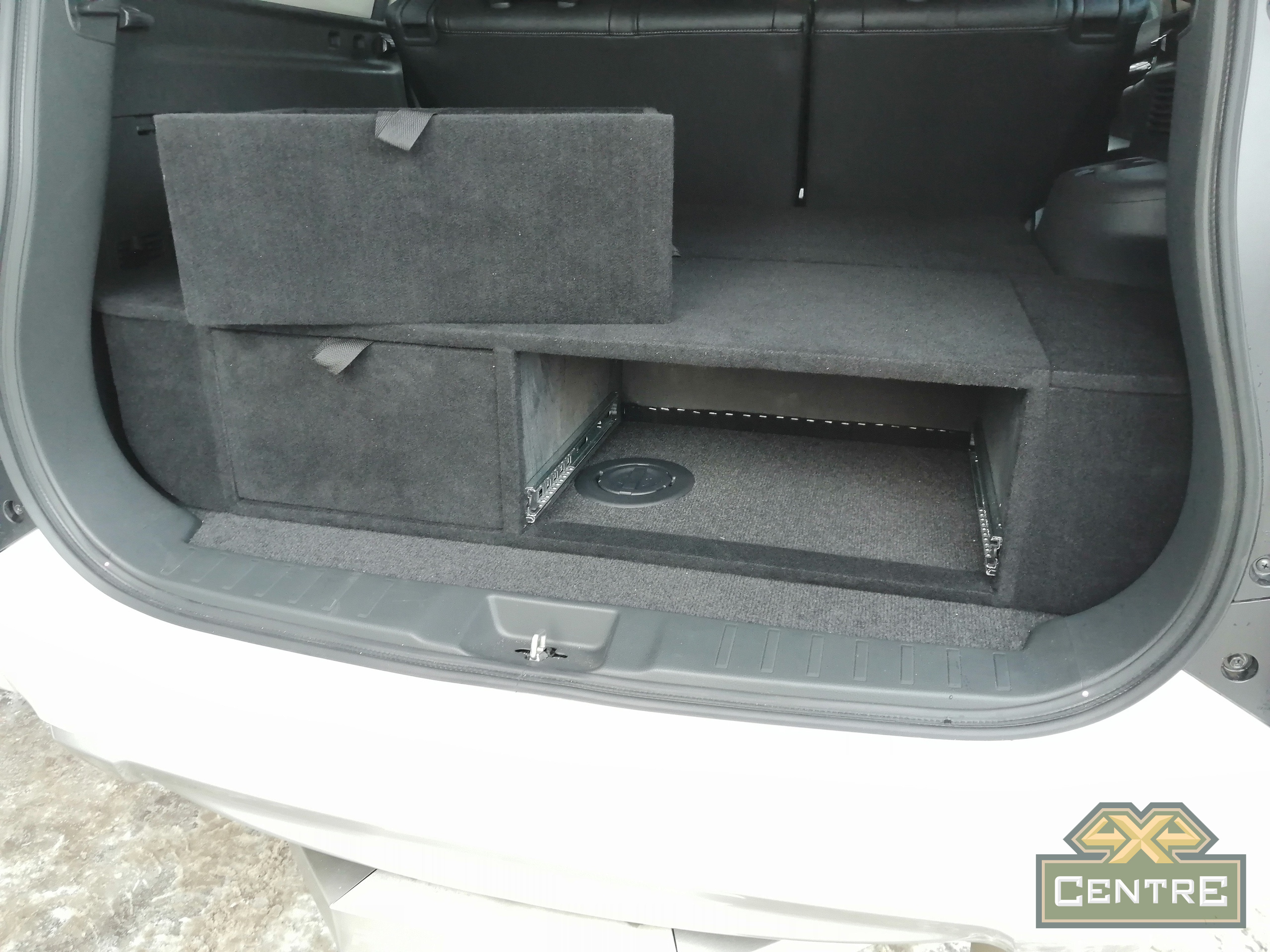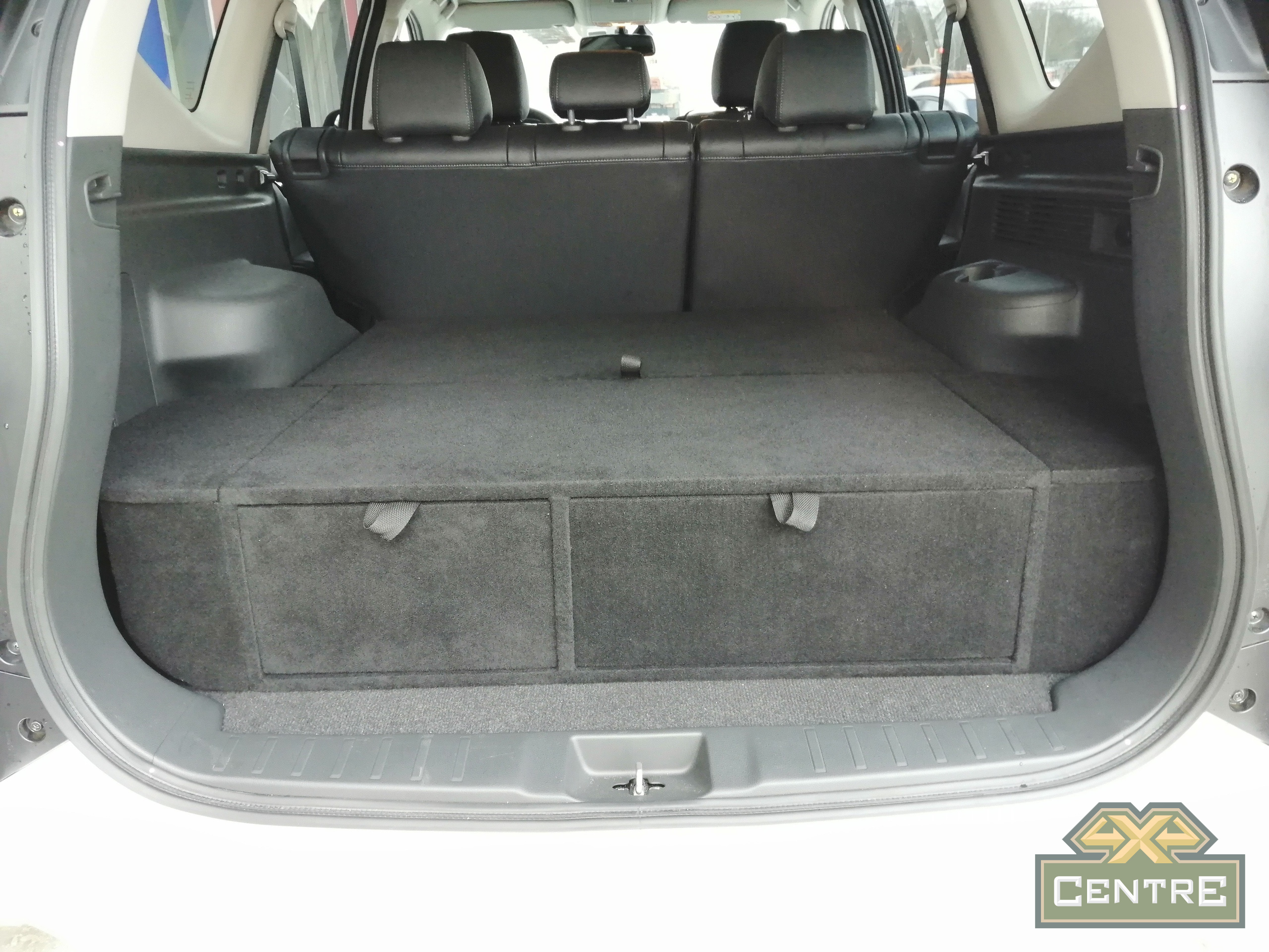 Органайзер-спальник позволяет убрать стропы, огнетушитель, аптечку, компрессор и т.д. в свои просторные ящики. При сложенных спинках задних сидений образует ровный пол, можно обустроить спальное место.