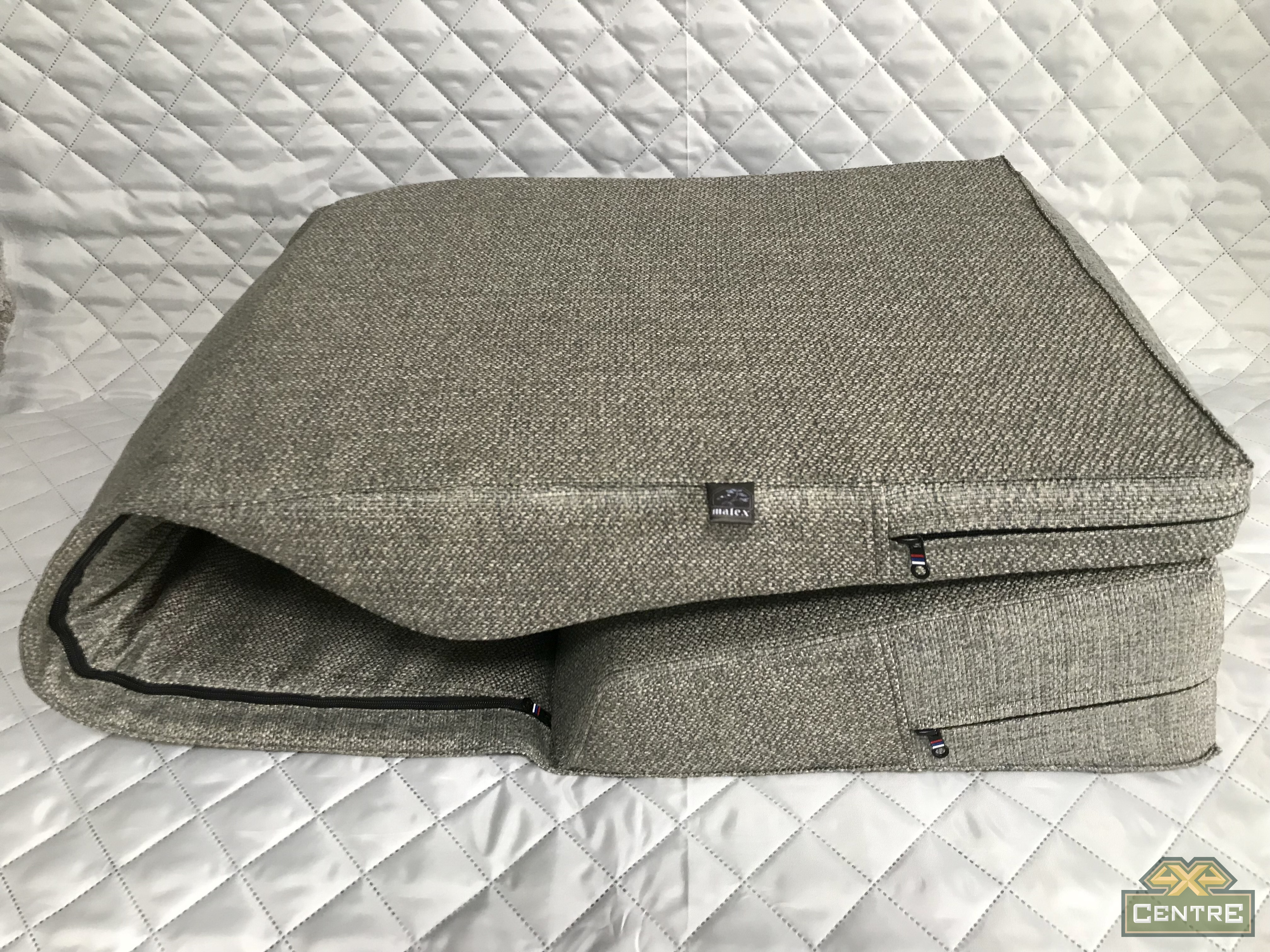 2. Легкая (вес одного изделия в чехле составляет 2 кг), компактная: в сложенном состоянии 60х50х18 см (одно изделие). Две соединенные между собой сумки (с подушками внутри) образуют мягкий пуфик высотой 36 см;
