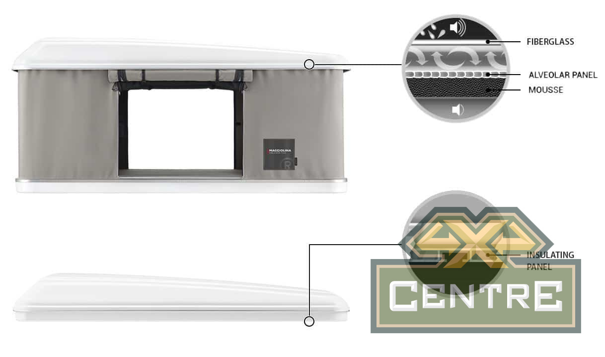 Крыша внутри палатки обтянута специальным мембранным материалом, под которым находится слой анти-конденсатной пены. Благодаря такой конструкции обеспечивается отсутствие конденсата внутри и защита от нагрева солнечными лучами. Такая конструкция является эксклюзивной особенностью палаток Maggiolina от Autohome.