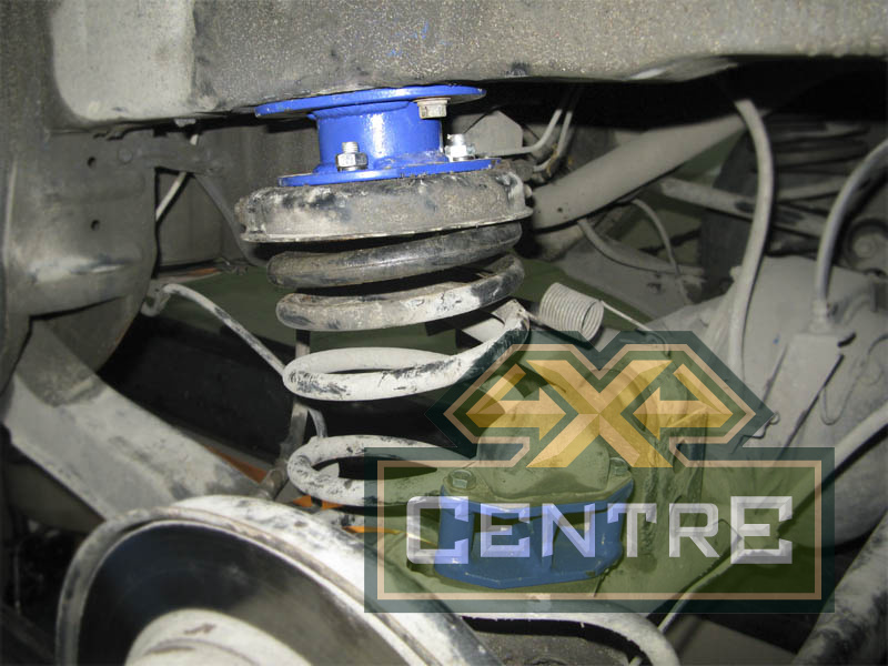 После лифта передней подвески, установить проставки над верхними шаровыми и удлинители передних амортизаторов.