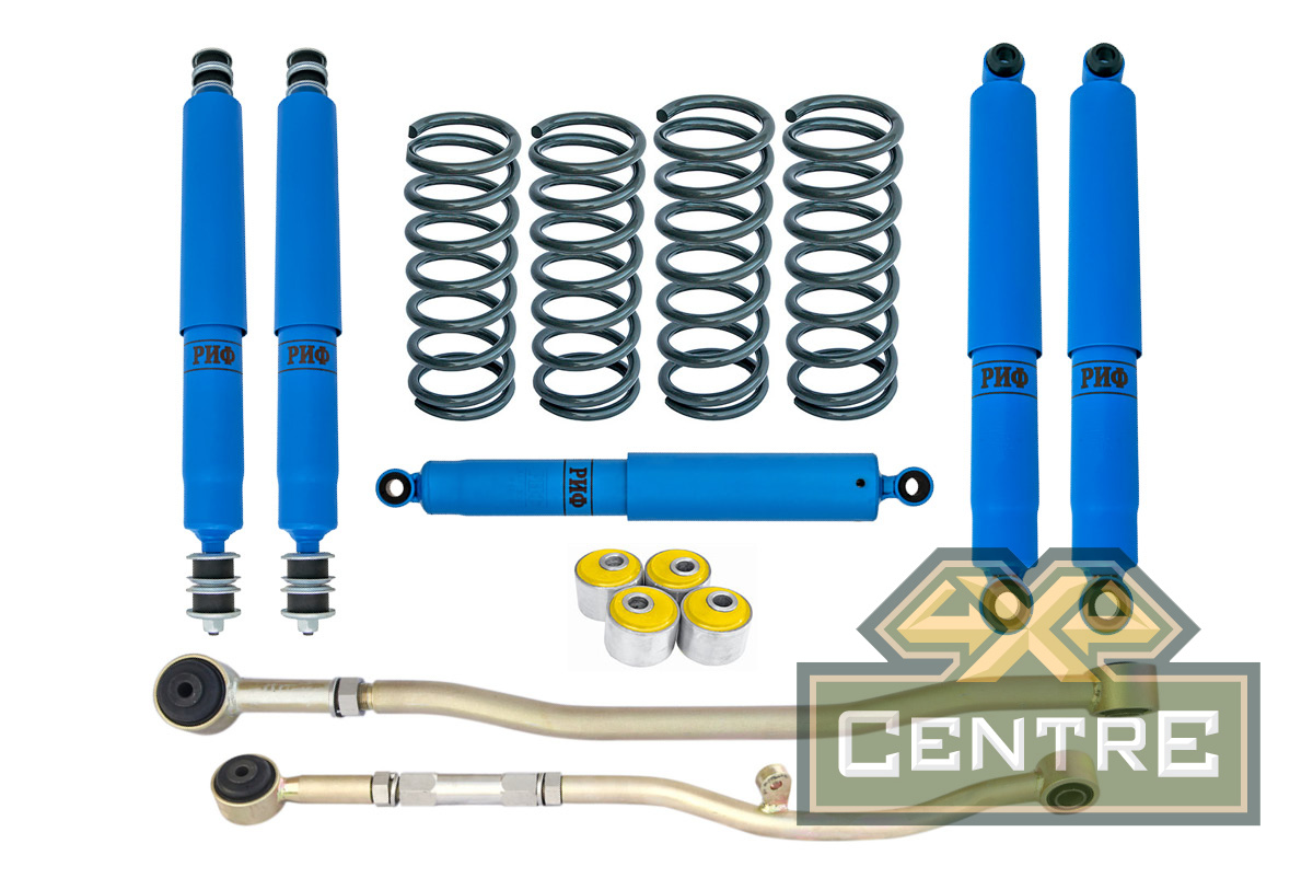 Все компоненты лифт-комплектов РИФ разработаны специально для эксплуатации внедорожника в тяжелых условиях на различных дорожных покрытиях. Амортизаторы с технологией R-AIR и пружины РИФ не только компенсируют вес установленного на внедорожнике дополнительного оборудования (бамперов, порогов, дополнительных топливных баков, лебедок и прочего), но также существенно повышают грузоподъемность автомобиля.