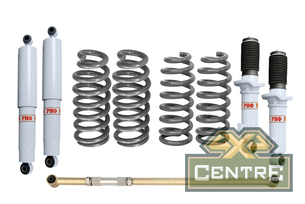 Все компоненты лифт-комплектов РИФ разработаны специально для эксплуатации внедорожника в тяжелых условиях на различных дорожных покрытиях. Амортизаторы с технологией R-Air и пружины РИФ не только компенсируют вес установленного на внедорожнике дополнительного оборудования (бамперов, порогов, дополнительных топливных баков, лебедок и прочего), но также существенно повышают грузоподъемность автомобиля.
