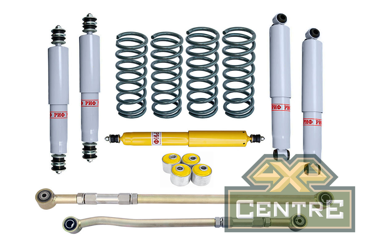 Все компоненты лифт-комплектов РИФ разработаны специально для эксплуатации внедорожника в тяжелых условиях на различных дорожных покрытиях. Рессоры, амортизаторы с технологией Foam Cell и пружины РИФ не только компенсируют вес установленного на внедорожнике дополнительного оборудования (бамперов, порогов, дополнительных топливных баков, лебедок и прочего), но также существенно повышают грузоподъемность автомобиля. Удлиненные стремянки и серьги РИФ произведены из высококачественных материалов и имеют увеличенный запас прочности. Рессорные втулки РИФ изготовлены из полиуретана обладает высокой упругостью, износостойкостью и термоустойчивостью к высоким или низким температурам.