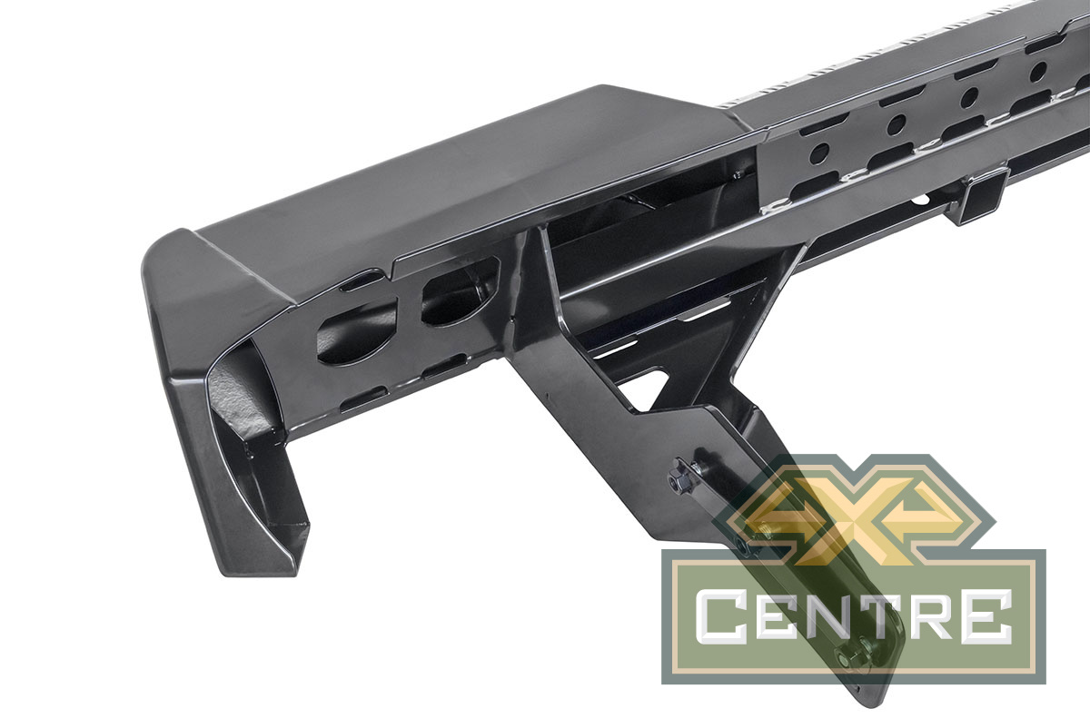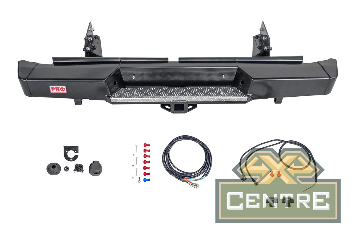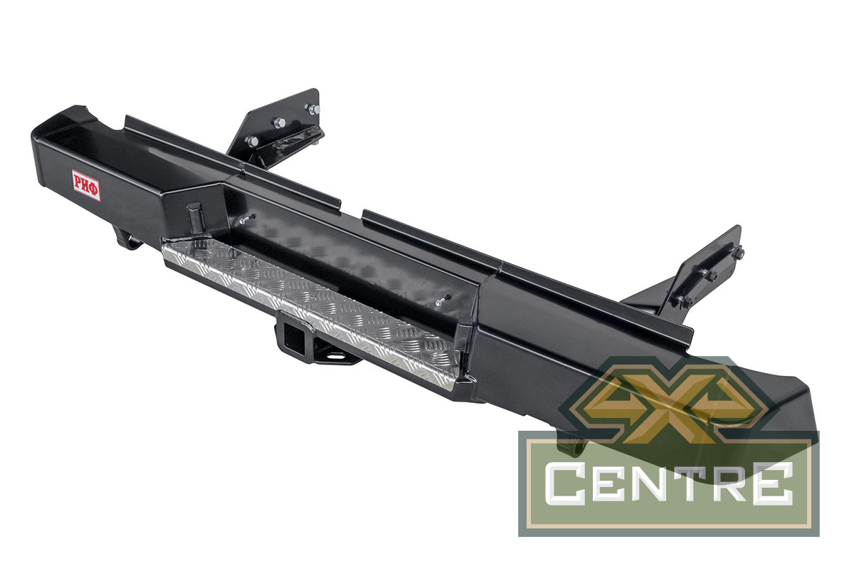 Задний силовой бампер РИФ надежно защитит кузов автомобиля на бездорожье или в городе в случае непредвиденных инцидентов. Бампер оборудован упорами под хай джек и буксирными проушинами для работы с рывковой или буксировочной стропой.