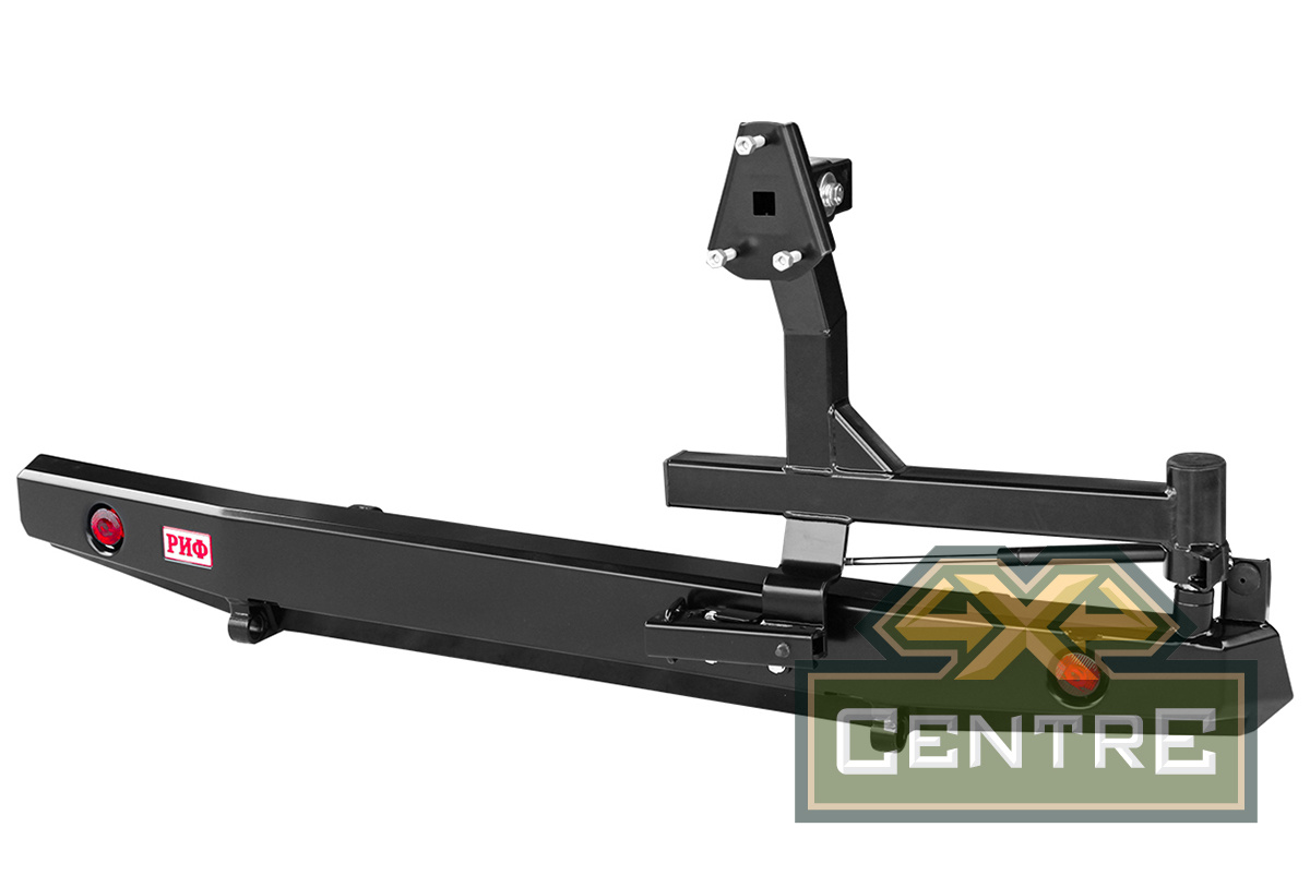 Задний силовой бампер РИФ надежно защитит кузов автомобиля на бездорожье или в городе в случае непредвиденных инцидентов. Бампер оборудован упорами под хай джек и буксирными проушинами для работы с рывковой или буксировочной стропой.