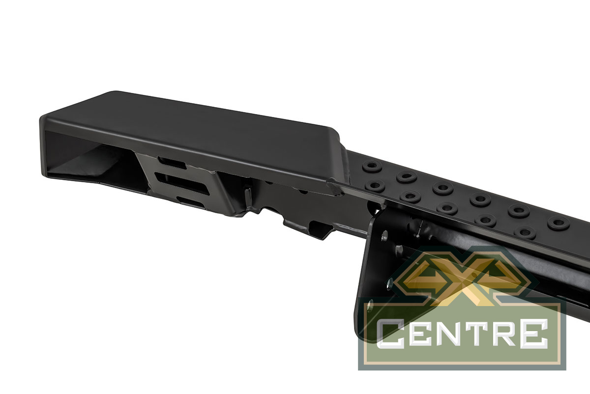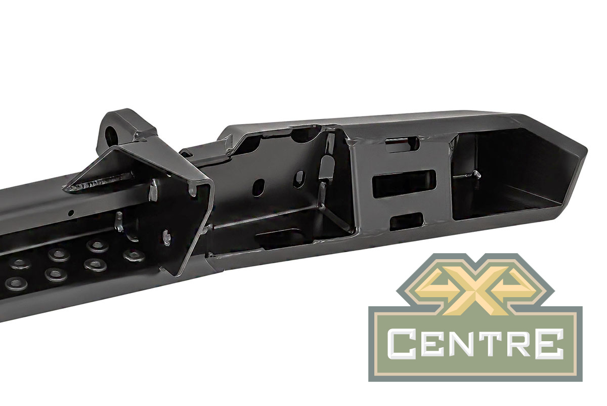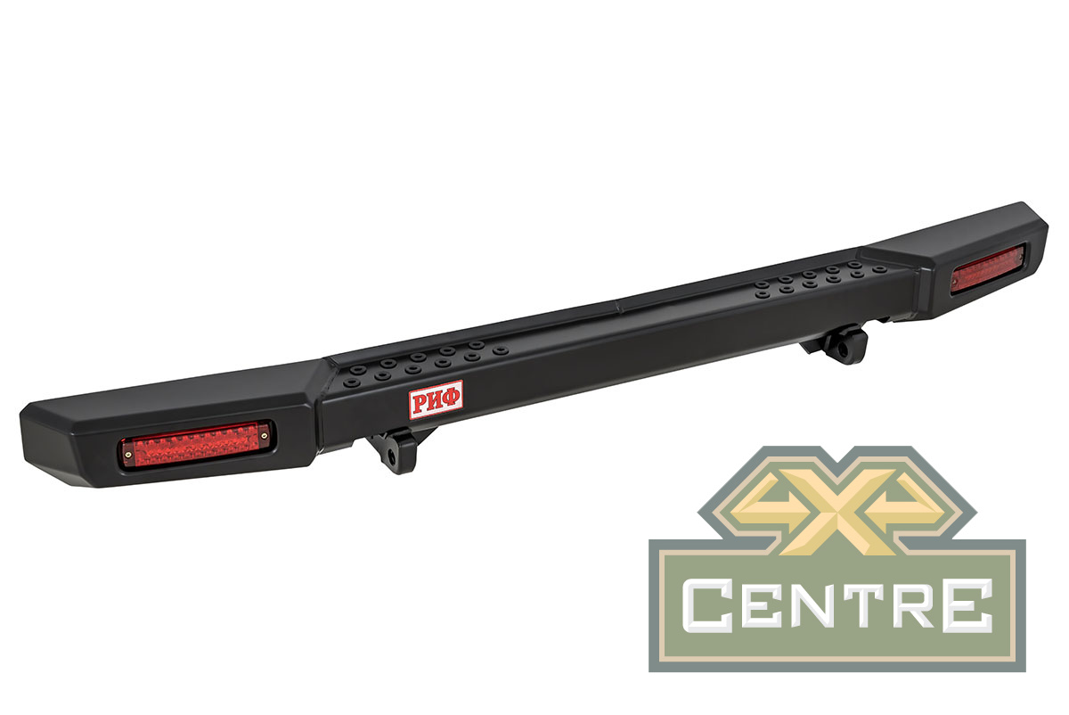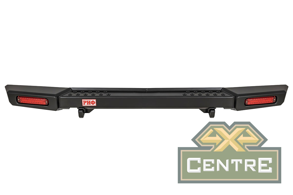Задний силовой бампер РИФ надежно защитит кузов автомобиля на бездорожье или в городе в случае непредвиденных инцидентов. Бампер оборудован упорами под хай джек и буксирными проушинами для работы с рывковой или буксировочной стропой.