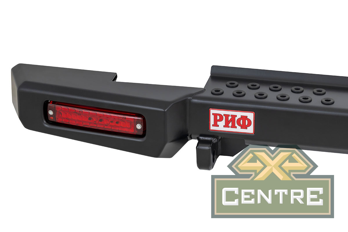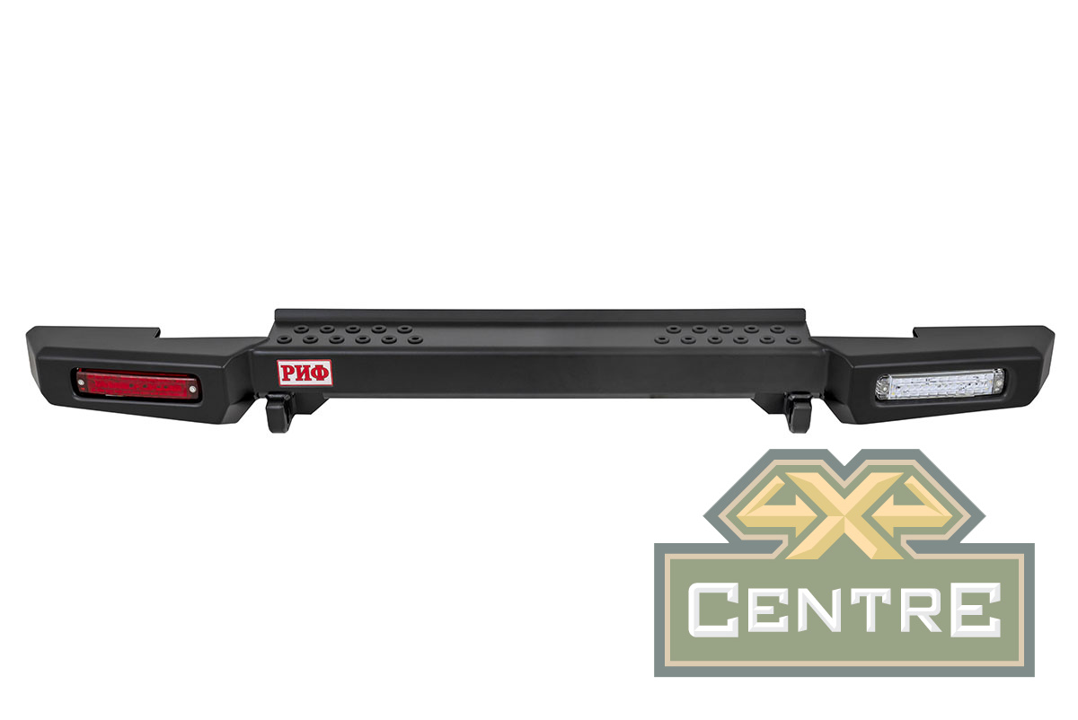 Задний силовой бампер РИФ надежно защитит кузов автомобиля на бездорожье или в городе в случае непредвиденных инцидентов. Бампер оборудован упорами под хай джек и буксирными проушинами для работы с рывковой или буксировочной стропой.