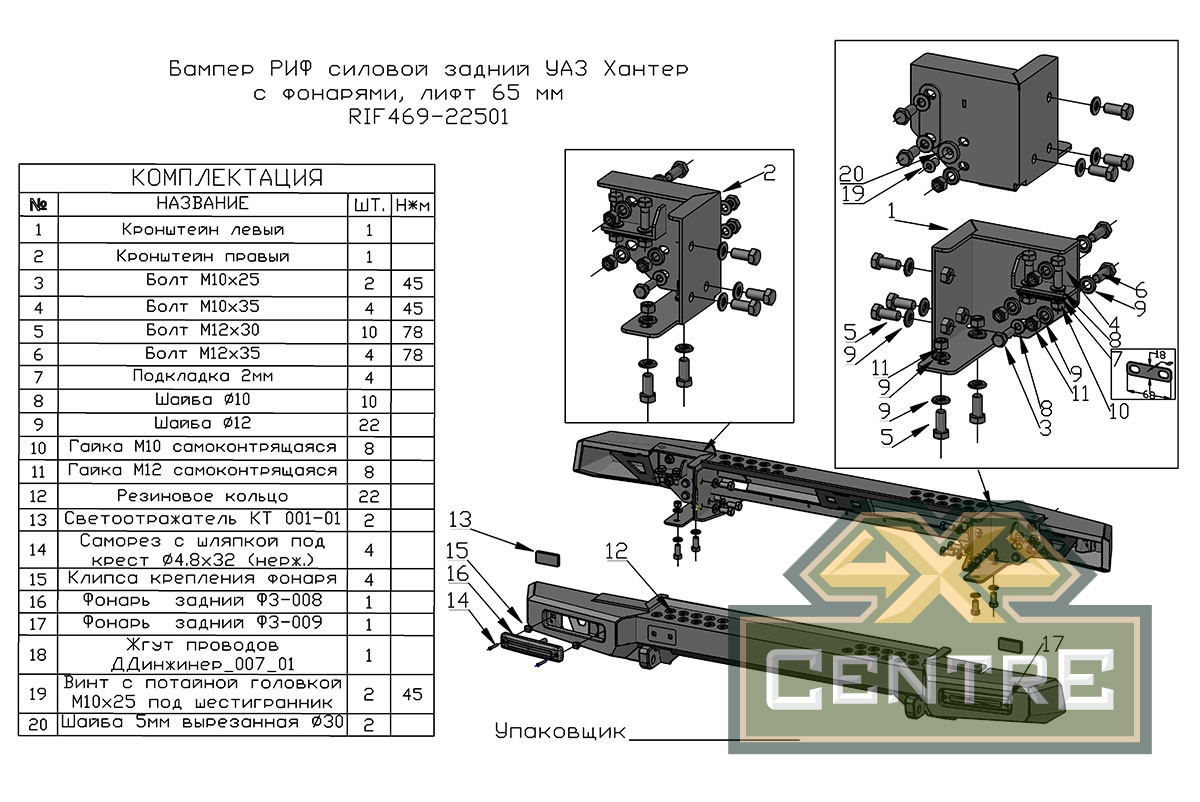 ДОСТОЙНОЕ предложение от компании 4x4CentrE: купить бампер риф силовой задний уаз хантер с фонарями, без квадрата под фаркоп, лифт 65 мм по ИНТЕРЕСНОЙ цене от производителя, недорого! Быстрая доставка по Екатеринбургу и всей России со склада интернет-магазина.