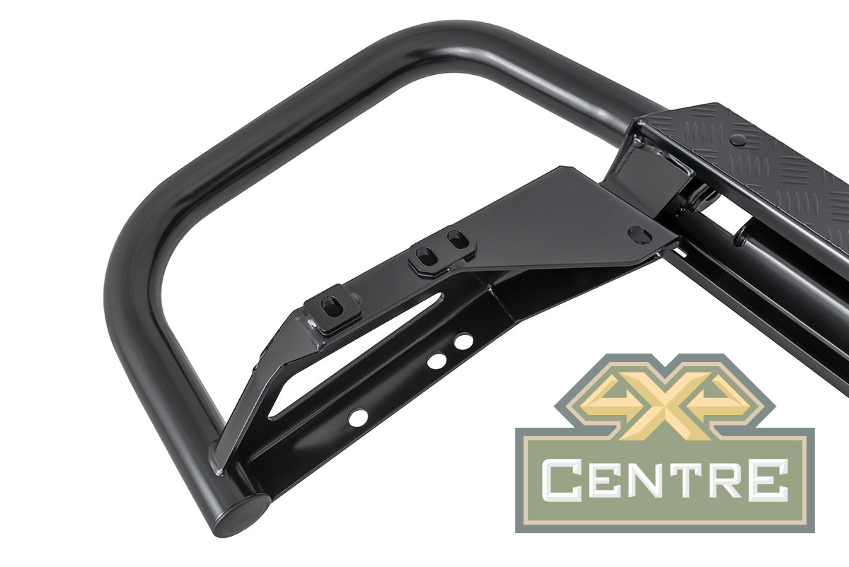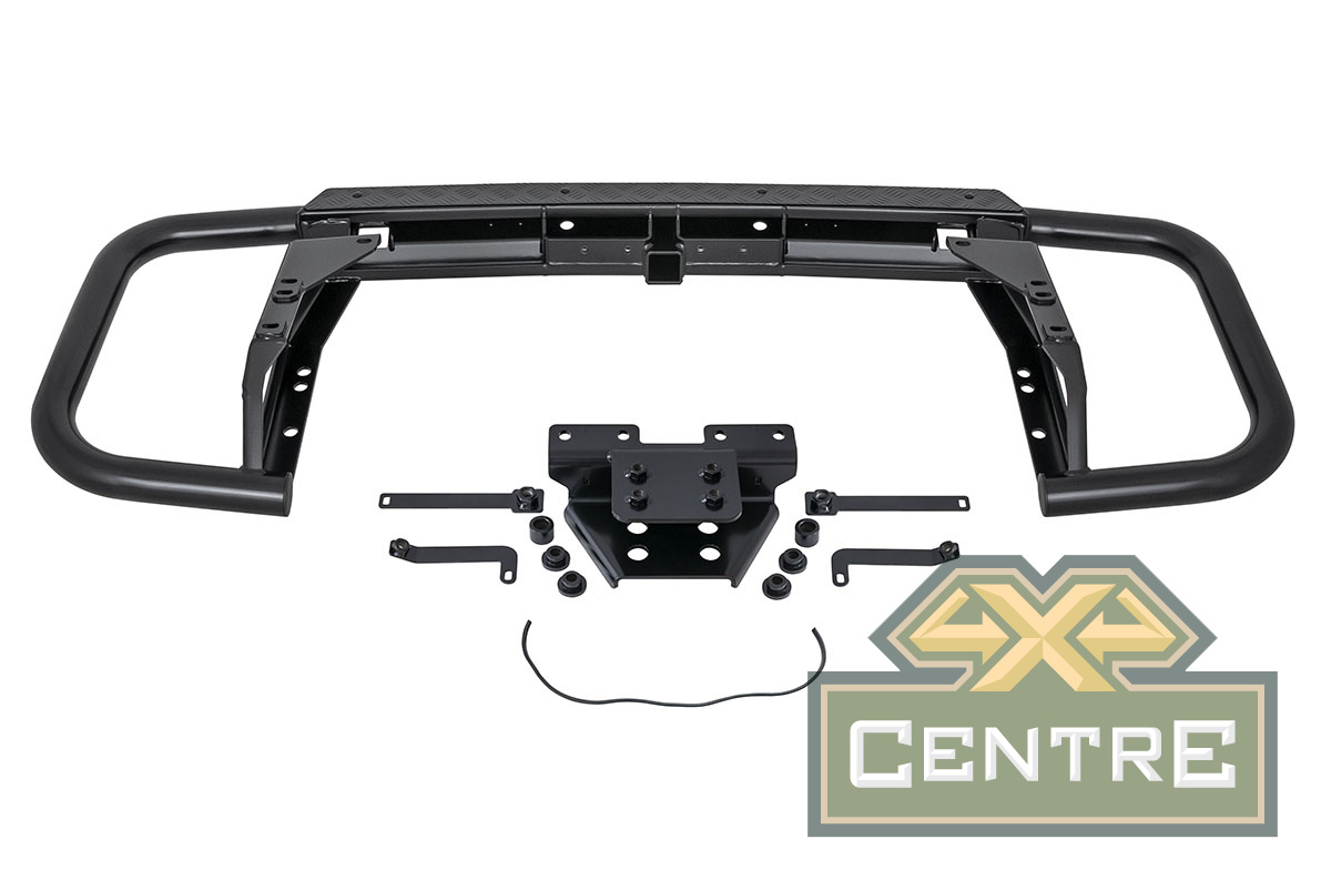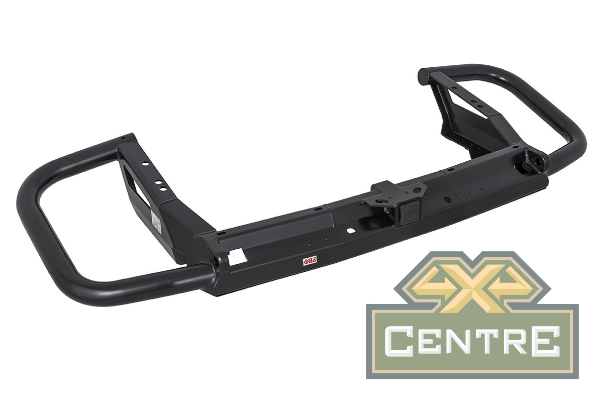 Задний силовой бампер РИФ надежно защитит кузов автомобиля на бездорожье или в городе в случае непредвиденных инцидентов. Бампер оборудован упорами под хай джек и буксирными проушинами для работы с рывковой или буксировочной стропой. Встроенный американский "квадрат" позволяет использовать любые съемные фаркопы, переходники, буксировочные устройства или съемные площадки для лебедки.
