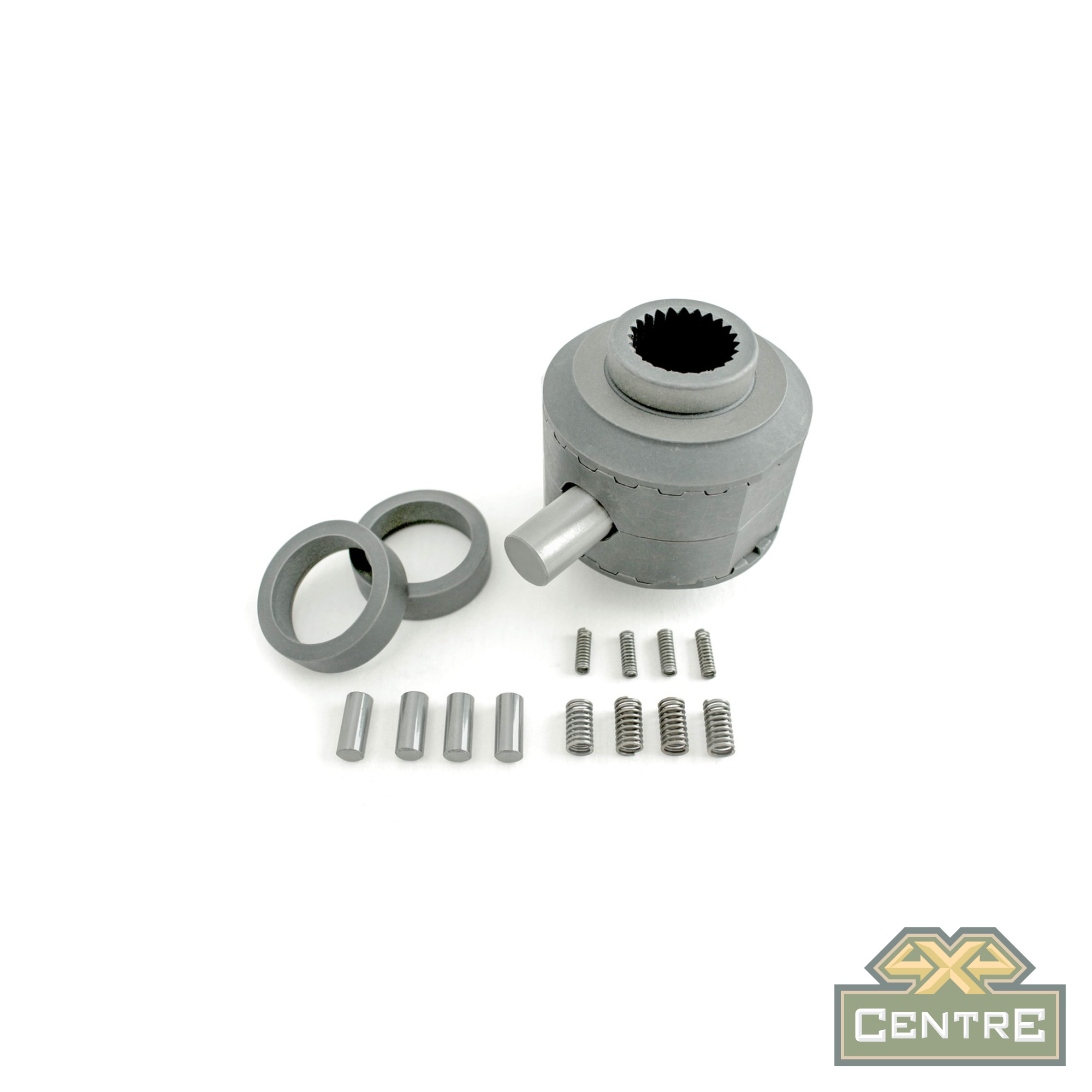 Конструкция блокировки достаточно проста и, как следствие, предельно надежна. Блокировка состоит из пары полуосевых и пары распорных муфт, пружинок, штифтов и шайб.