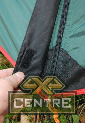 Входы во внутреннюю палатку закрывается как тканевым пологом, так и москитной сеткой для вентиляции в жаркую погоду. Чтобы в критический момент не перепутать молнии выхода и москитной сетки, они имеют различный цвет: красная молния открывает выход, а черная - москитную сетку. Молнии крупные, 8-го размера. На замках молнии удобные петельки оранжевого и черного цвета. Открытые пологи входа можно свернуть и зафиксировать баклей. При полностью закрытом входе внутренняя палатка надежно защищает от пауков, комаров, змей и даже муравьев. Старайтесь держать внутреннюю палатку всегда закрытой.