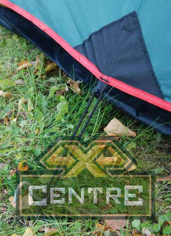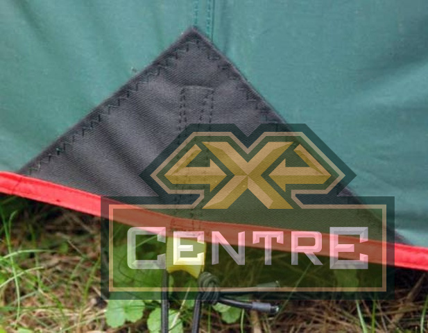 Все узлы, испытывающие повышенные нагрузки, усилены высокопрочной тканью. Нижняя часть внешнего тента усилена вставкой из прочного материала Oxford 150D, которая позволяет защитить нижнюю часть палатки от повреждения багажом или обувью. Край внешнего тента и край юбки обшит прочной стропой, что значительно уменьшает риск порвать тент ветками и камнями. Стропа красного цвета, поэтому край палатки виден даже в сумерках и густой траве. Юбка по периметру палатки защищает от потоков холодного воздуха, дождя и насекомых. В жаркую погоду юбку можно свернуть и зафиксировать системой быстрой фиксации.
