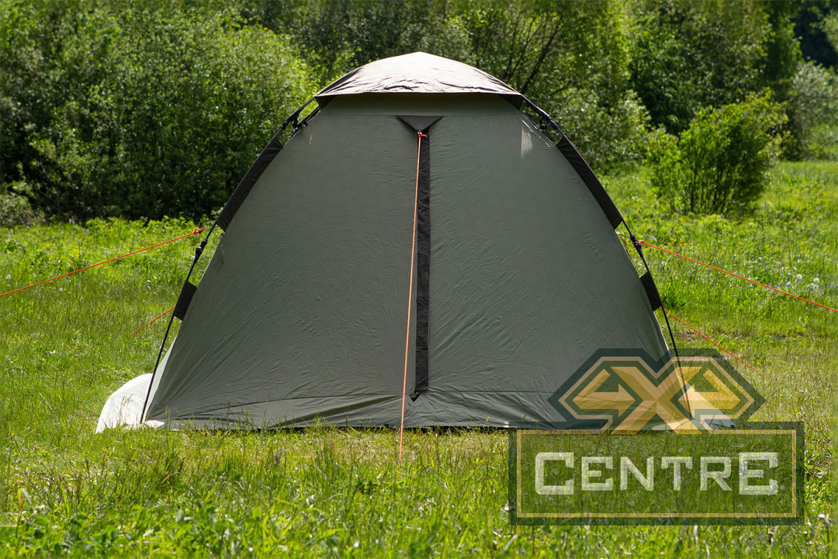 Внутренняя палатка (спальная) крепится на клевантах. В куполе предусмотрены два отверстия под вентиляцию (продублированы москиткой). В свою очередь, внешний тент продублирован зонтиком, который закрывает вентиляционные отверстия и препятствует попаданию влаги.