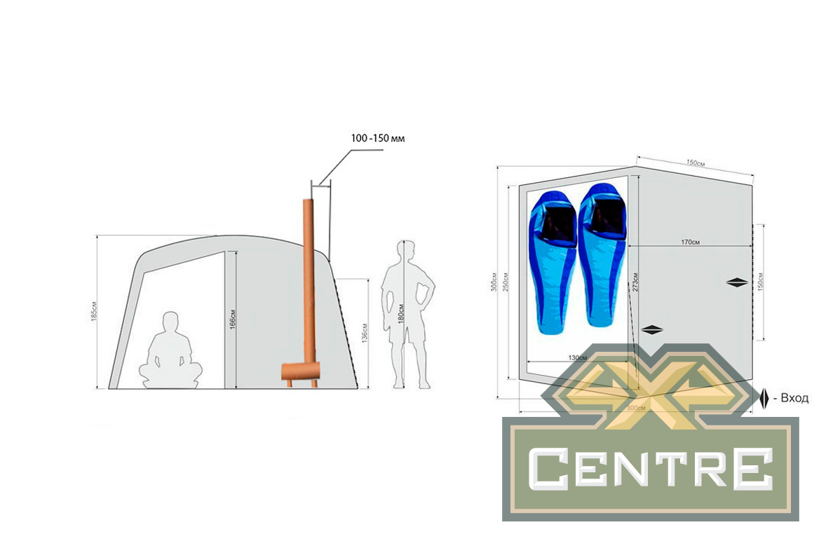 - Внутренняя палатка: 275 (Д) X 130 (Ш) X 165 (В) CM