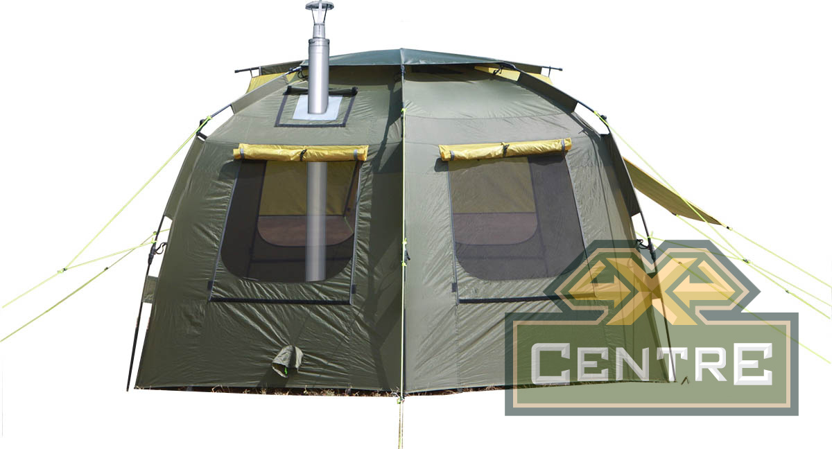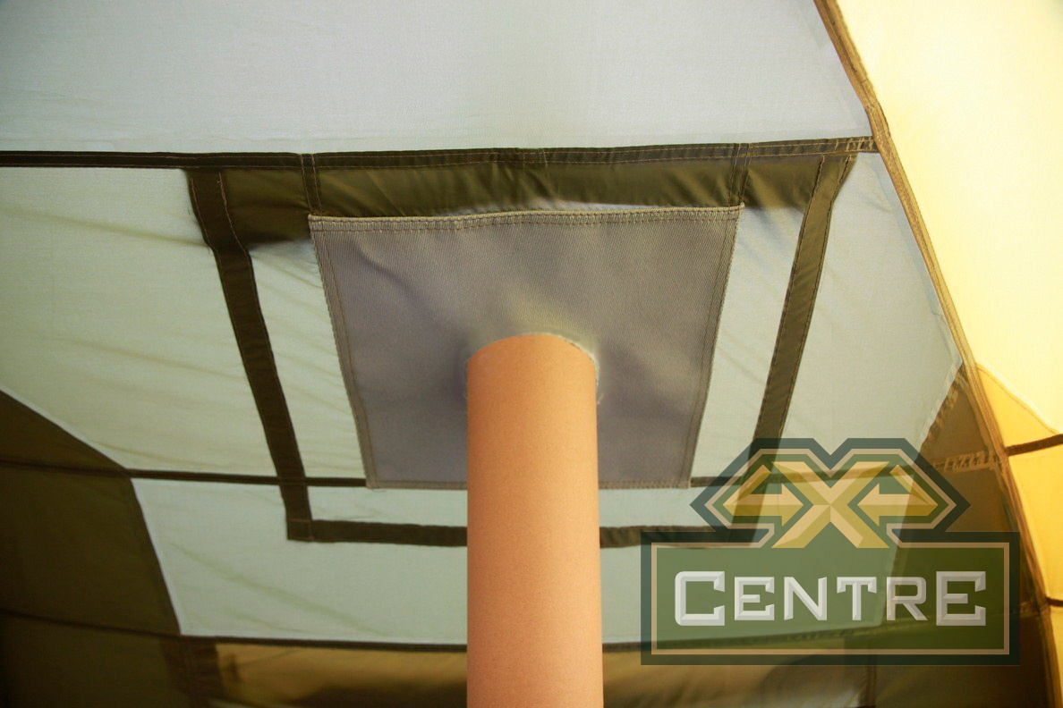 Палатка спроектирована с учетом возможности применения теплообменника в качестве обогревателя. В верхней части тента находится специальное окно из огнеупорной ткани, в которой вырезается проход под требуемый диаметр трубы теплообменника.