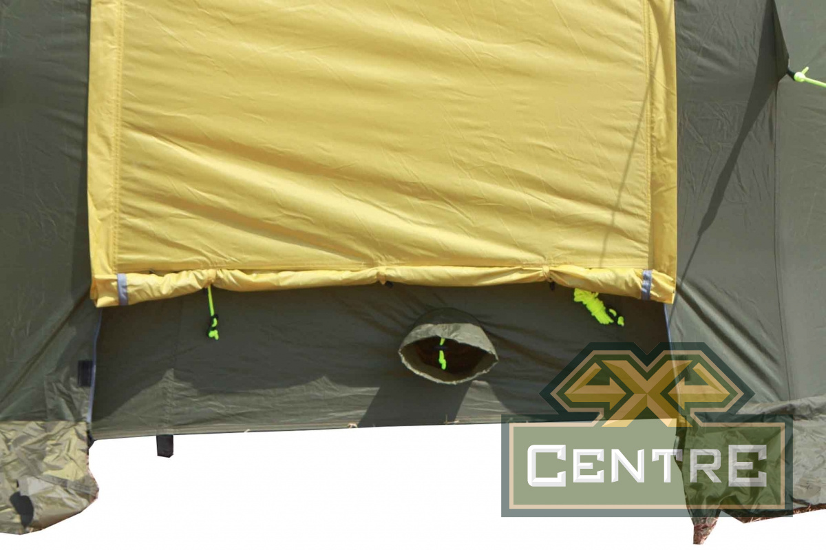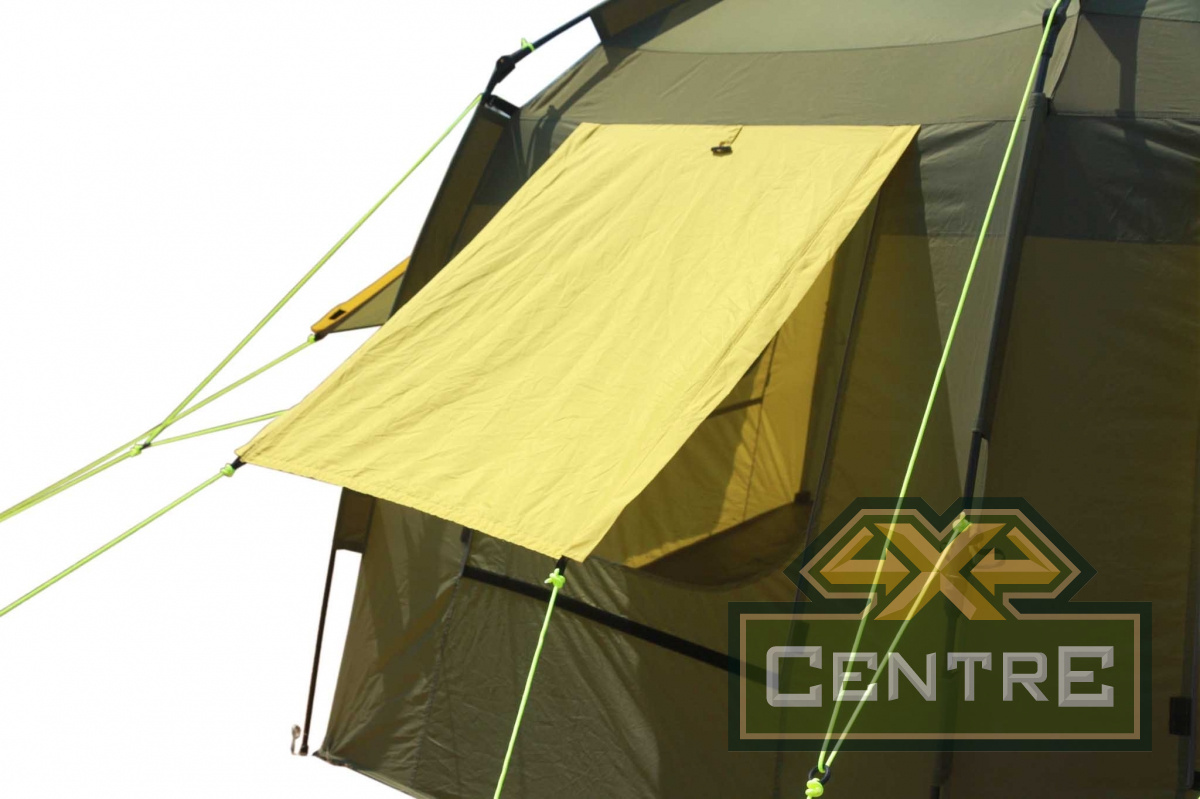 Четыре дополнительных вентиляционных окошка (по два на входе и с тыльной стороны палатки) при использовании ее в холодную погоду закрываются ветро/водозащитными шторками так же на застежках «молния».