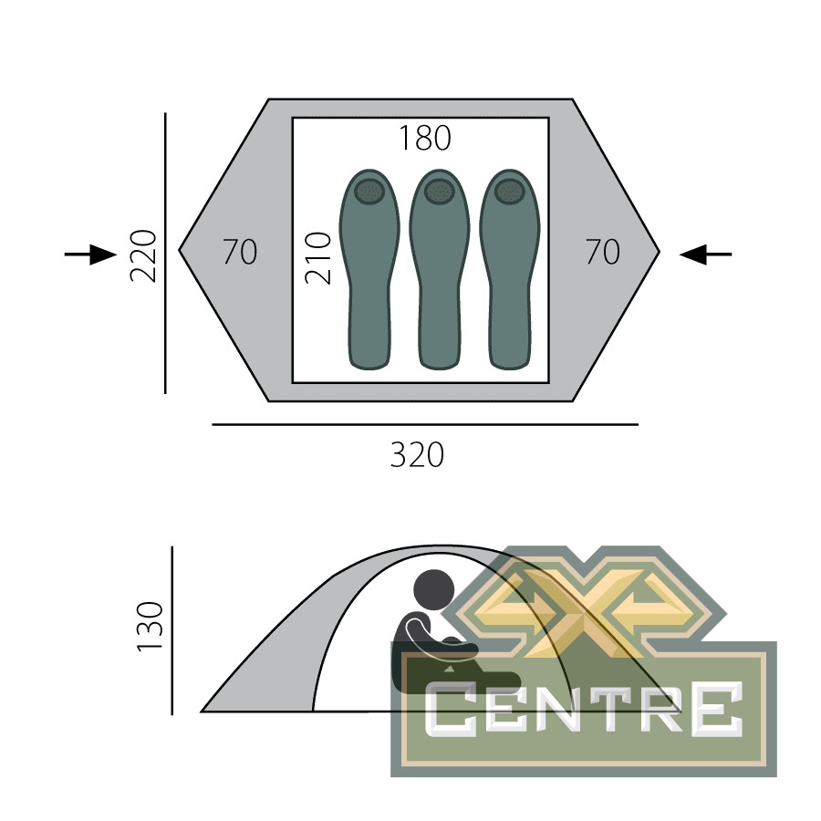 Модель с вертикальными боковыми стенками и 2 полноценных входа делают эту палатку максимально удобной для использования.