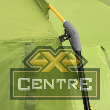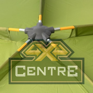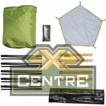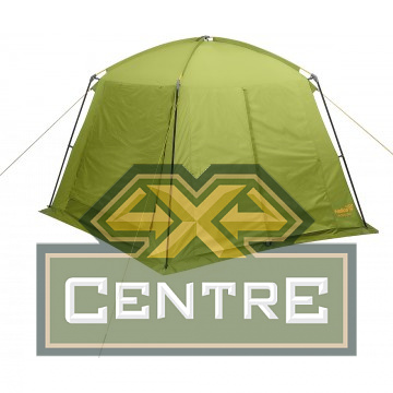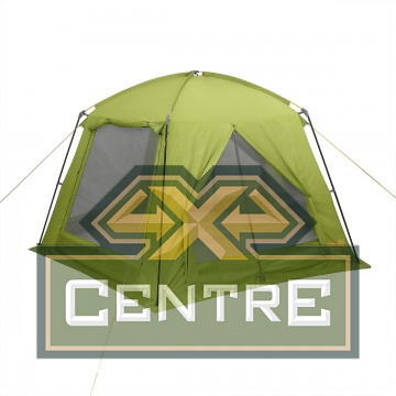 Под его навесом можно разместить кухню или столовую, хранить снаряжение или организовать комфортные и просторные спальные места на раскладушках или матрасах для 3 человек.