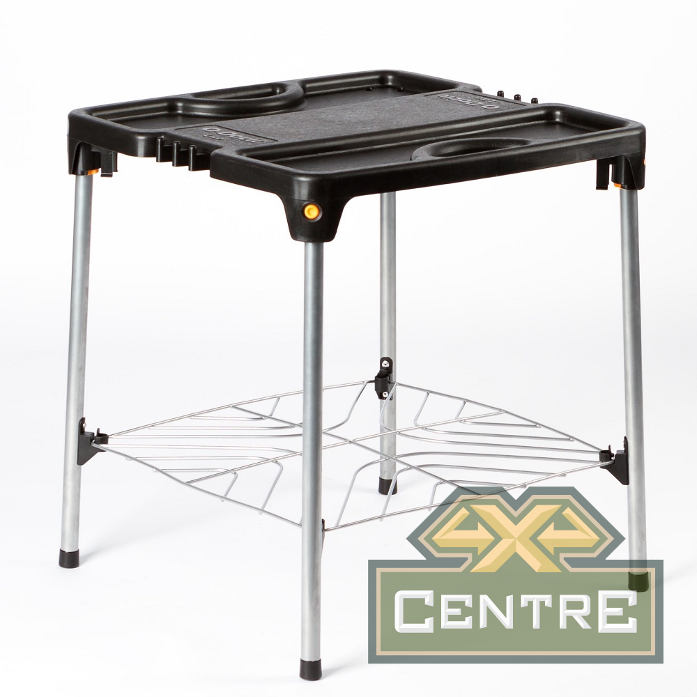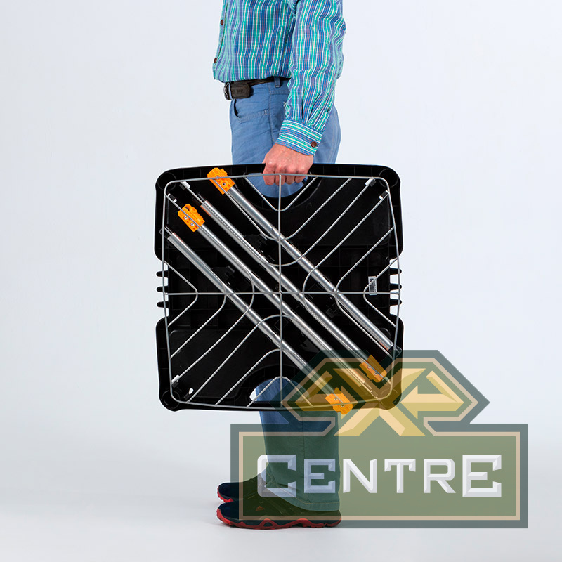 Прочная пластиковая столешница с выемками для ножек гриля. В столешницу надежно монтируются легкие прочные ножки стола, которые надежно фиксируются стопорными кнопками.