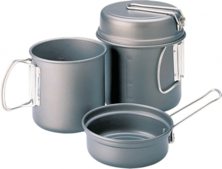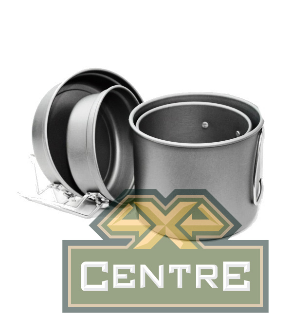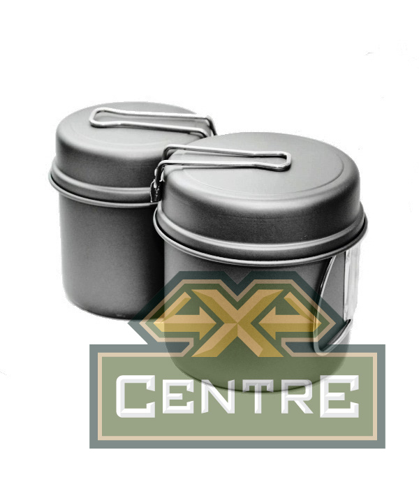 Набор состоит из двух котелков объемом 1 л и 0,6 л с крышками, которые могут использоваться как полноценные сковородки.