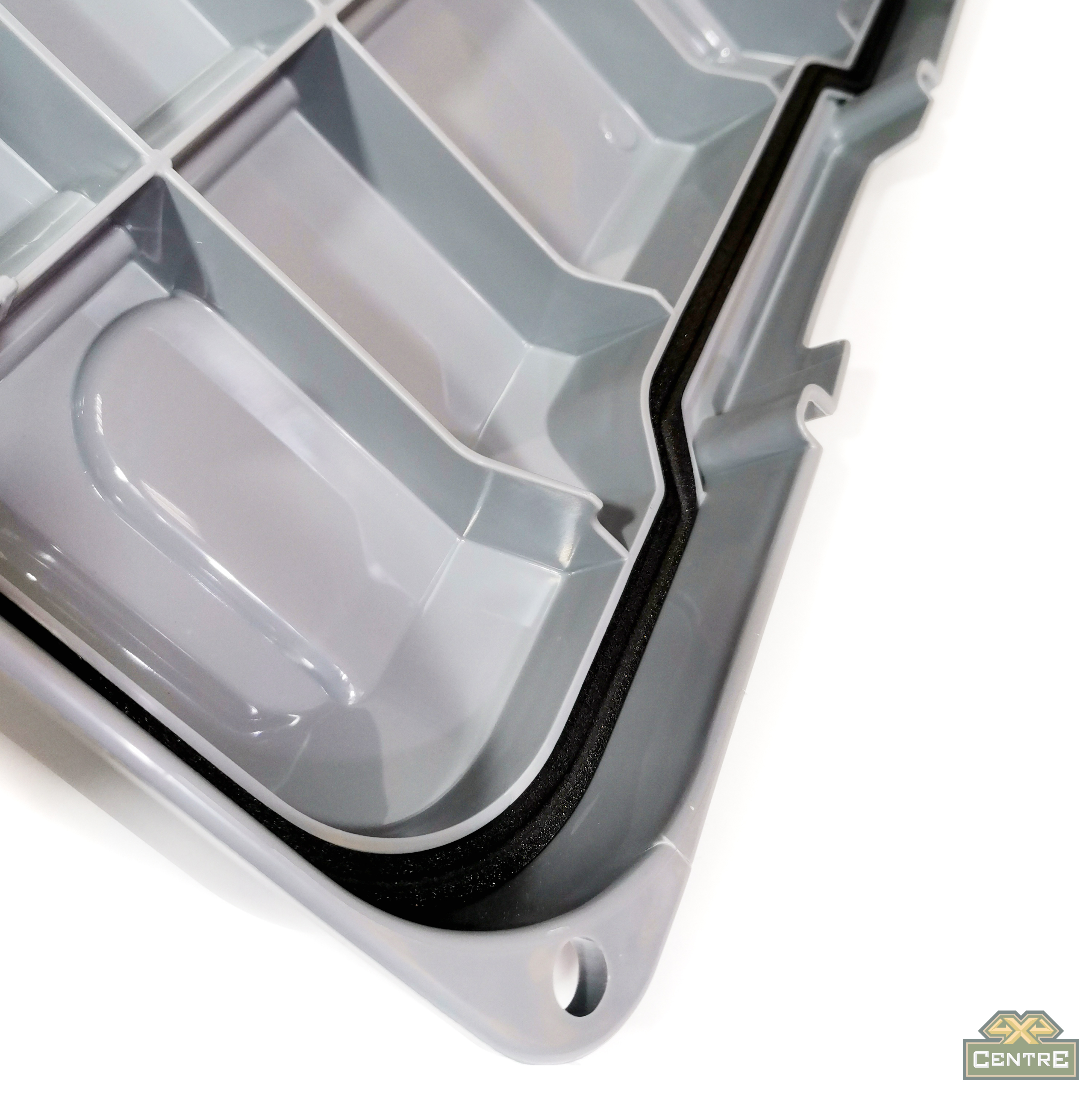 Особенности данной модели - крышка с мягкой полиуретановой прокладкой и металлические скобы на ручках - в результате ящик надежно защищен от попадания внутрь влаги и пыли.
